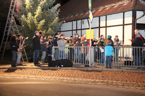 Letztes Jahr waren den Musikanten die Finger an die Instrumente gefroren, dieses Jahr war eher Osterwetter. Kein kalter Wind oder Schneegestöber, das die Menschen davon abhielt zu kommen, viele waren der Einladung gefolgt. Zeitlich günstig, nach der Krippenfeierprobe kamen auch die Kinder mit, um die weihnachtliche Stimmung, bei angenehmen Temperaturen, zu genießen.