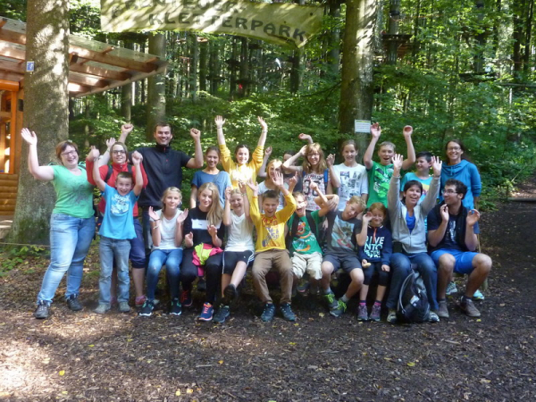 Die Jungmusiker starteten am 12. September mit dem Fahrrad in Richtung Tannenbühl zum Kletterpark. Nach einer fachkundigen Einweisung durch einen Kletterguide, durften die Kinder in die verschiedenen Kletterparcours starten. Immer wieder konnte man freudige Ausrufe und „Affenlaute“ hören und im Anschluss erzählten sie eifrig von ihren Erlebnissen in den Kletterparcours. Besonderen Spaß hatten sie an den rasanten Abfahrten mit den Seilbahnen. Nach dem klettern ging es als Tages-Abschluss nach Hifringen zur Familie Schmid zum Grillen.