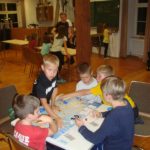Tagelang hatte es geregnet und deshalb war die Wiese beim Sportplatz total durchnässt. Damit die Kids trotzdem nicht auf das Zeltlager beim Ferienprogramm verzichten mussten, hat sich das „Zeltlagerteam“ des Fördervereins dazu entschlossen, das Zeltlager einfach in den Proberaum zu verlegen. Schwer bepackt mit Schlafsack, Kissen und Spielen strömten die 20 Kinder in den Proberaum. Nach einer kurzen Begrüßung startet Daniel Schmid direkt mit der Bastelaktion. Die Kinder durften in diesem Jahr Trommeln mit einem Blumentopf basteln. Mit viel Tapetenkleister wurden die Blumentöpfe eingeschmiert und anschließend wurden sie mit mehreren Lagen Backpapier bespannt. Zum Abschluss duften die Kids mit buntem Papier kreativ werden und die Trommeln noch bunt bekleben. Nach einer Stärkung mit Wurst- und Käsewecken durften die Kids ihre mitgebrachten Gesellschaftsspiele auspacken und in kleinen Gruppen spielen. Als es dann irgendwann auf die Schlafenszeit zuging, suchten sich die Kids im Proberaum ein Plätzchen und packten ihre Schlafsäcke aus. Sie waren jedoch noch lange nicht so müde, wie die Betreuer gedacht hatten. Lange wurde gequasselt und es war nicht an Schlaf zu denken. Am nächsten Morgen endete das „Ersatzzeltlager“ im Proberaum mit einem gemeinsamen Frühstück. Im nächsten Jahr hoffen wir alle auf tolles Wetter, dass wir wieder zelten können und auch wieder eine Nachtwanderung machen können.